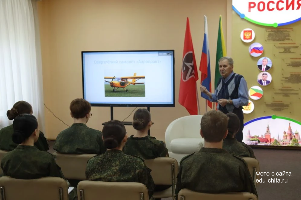 На встречу с юнармейцами был приглашен Родиков Борис Георгиевич, летчик, полковник запаса авиации, исследователь истории авиации Забайкалья.