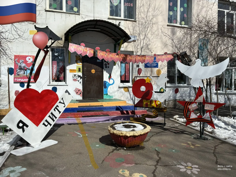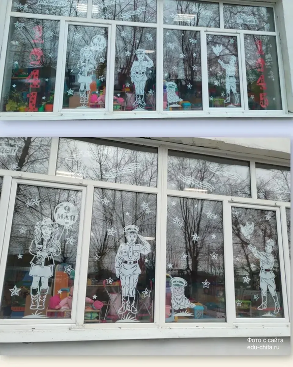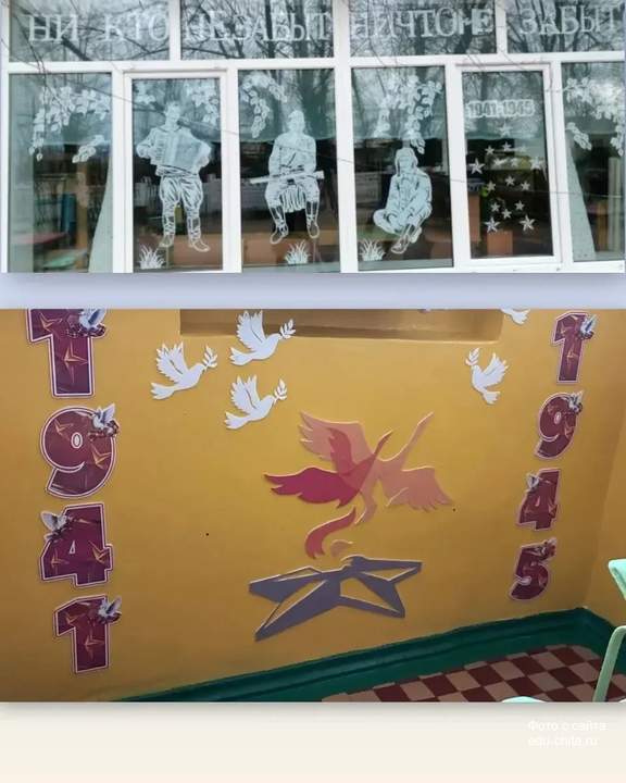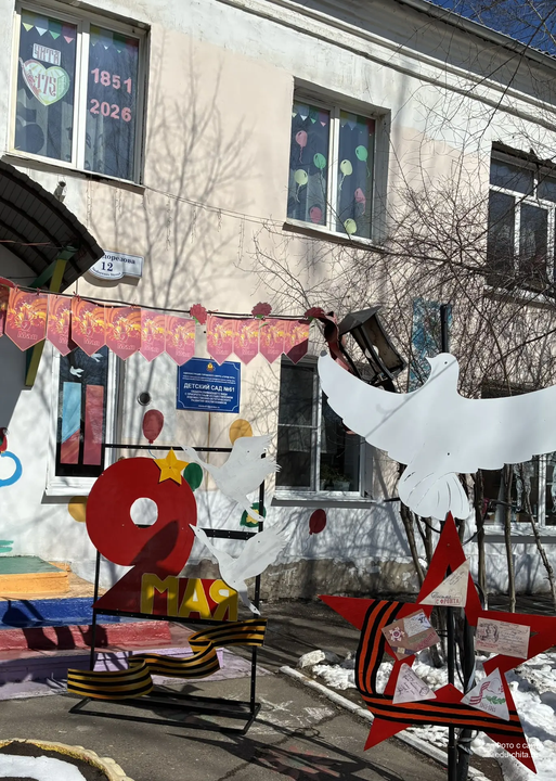 В детском саду №61 уже оформлены стенды, окна Победы, групповые помещения и приёмные, а также центральный вход. Это лишь один из примеров того, как образовательные учреждения города украшают свои территории в честь праздника.