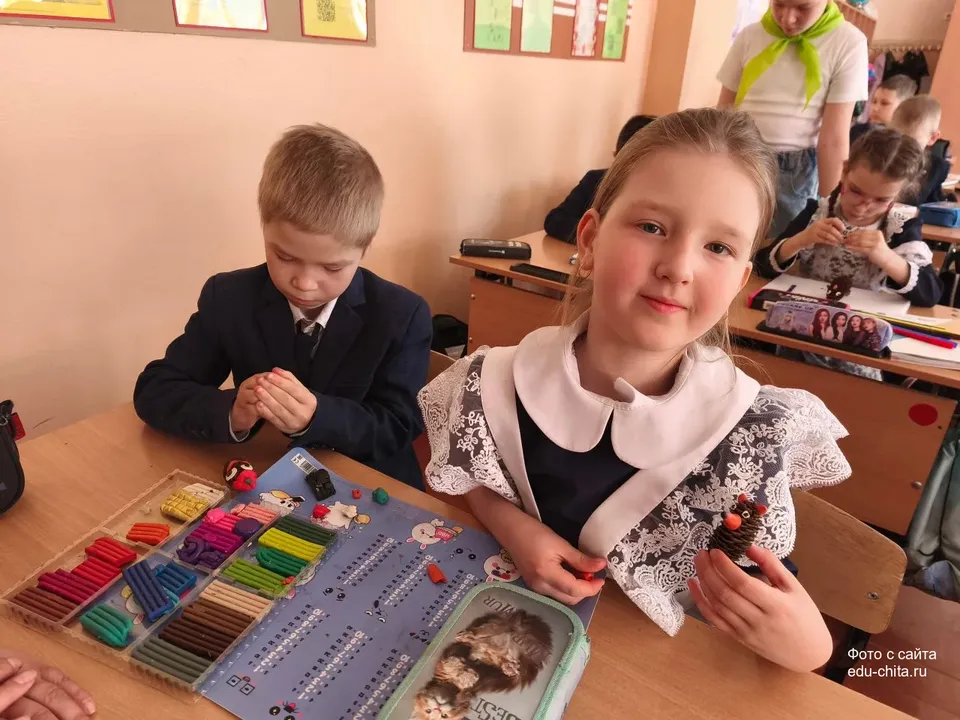 На уроке эколята рассказали первоклассникам о том, как важно беречь нашу планету, и поделились своими достижениями в течение года. Также был проведён мастер-класс по изготовлению зверюшек-жителей леса из шишек и пластилина.