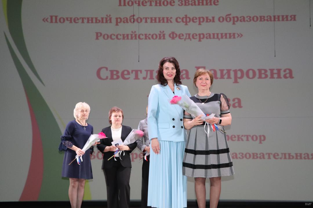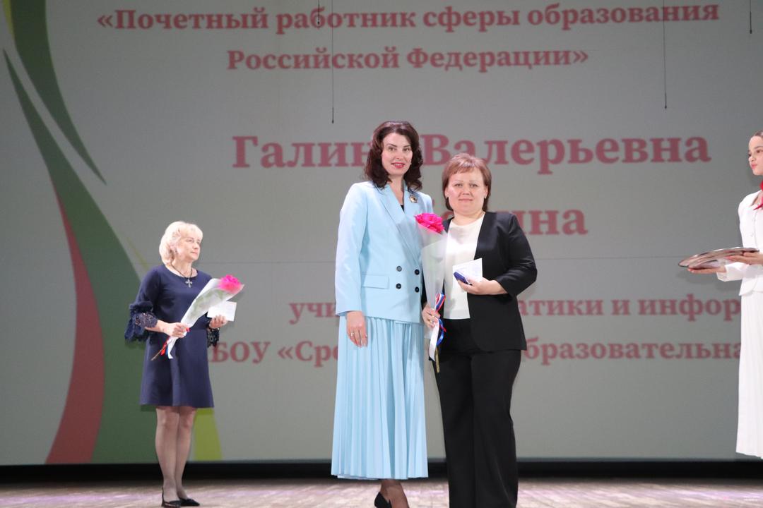 Почетной грамотой Министерства просвещения Российской Федерации награждены: воспитатель детского сада № 85 Галина Михайленко, учитель начальных классов школы № 19 Татьяна Мыльникова, учитель математики гимназии № 21 Ирина Пантилеева, педагог дополнительного образования Дворца детского (юношеского) творчества Оксана Пашкова, учитель труда школы № 51 Тамара Петрова, воспитатель детского сада № 45 Ирина Попова, учитель истории и обществознания школы № 3 Юлия Прядицкая, заместитель заведующей детского сада № 36 Ирина Русакова, директор школы № 8 Светлана Скубиева, замдиректора школы № 1 Елена Суворова, заведующая детским садом «6 Ольга Титова, учитель начальных классов школы № 49 Елена Утенкова, учитель начальных классов школы № 30 Олеся Федорова, учитель китайского языка школы № 14 Надежда Чубарова, учитель русского языка и литературы школы № 8 Ольга Шайдурова, учитель начальных классов гимназии № 4 Юлия Шелеметьева, учитель биологии школы № 5 Ольга Шинкарева, заместитель заведующей детского сада № 29 Екатерина Юринская.