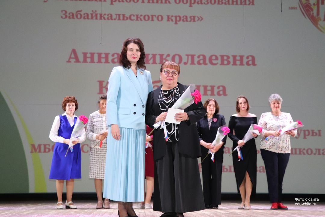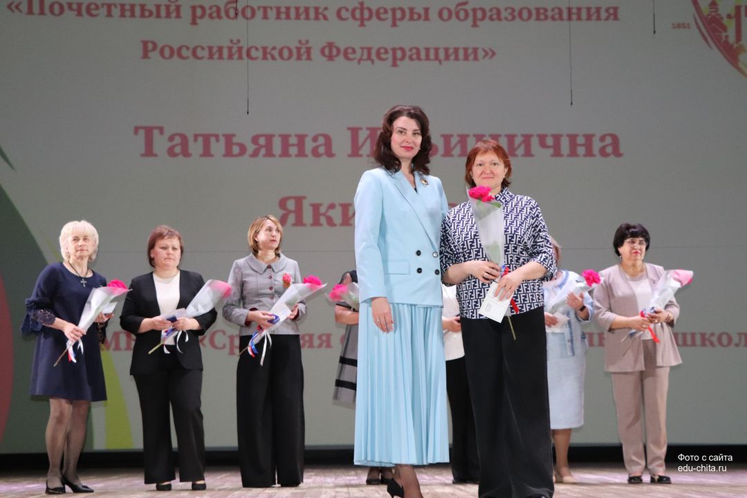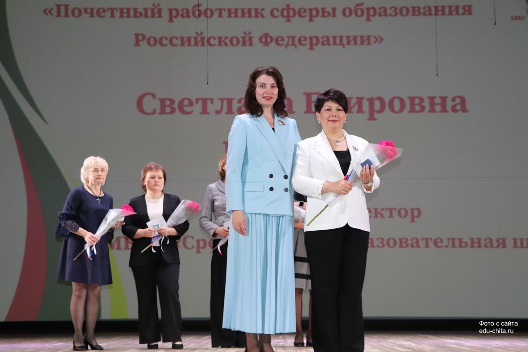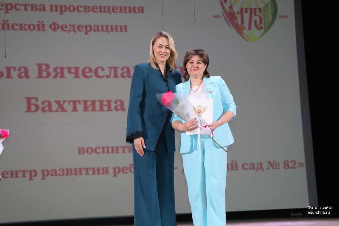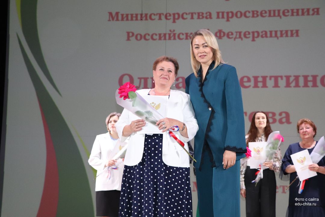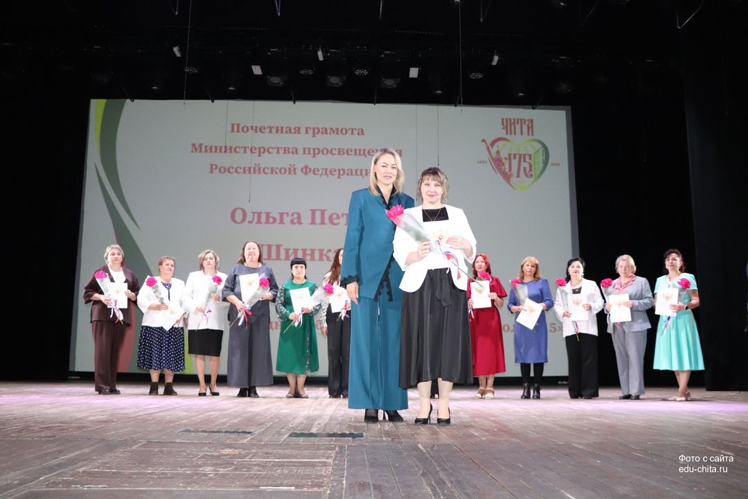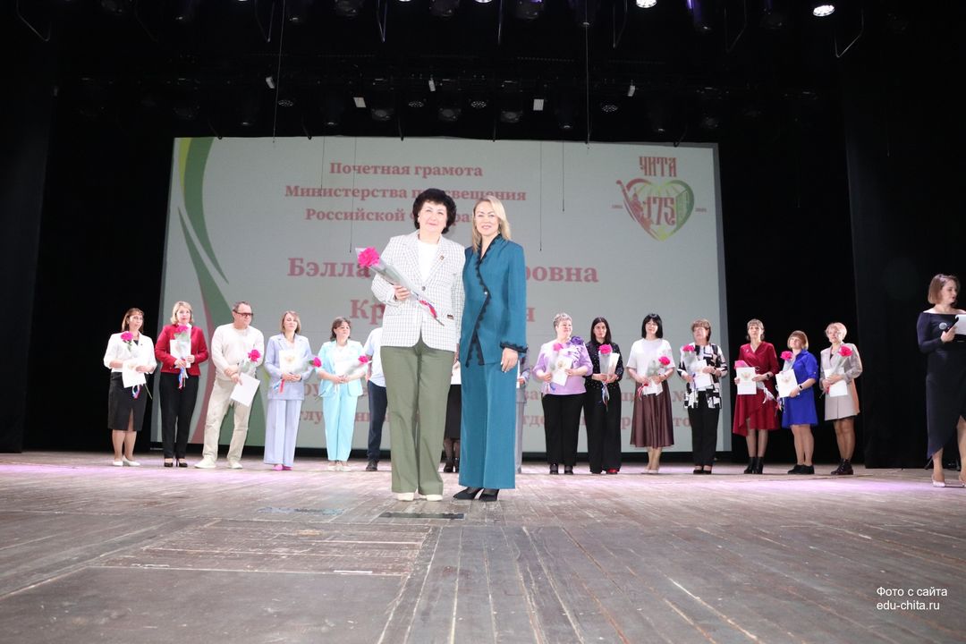 За многолетний добросовестный труд, профессионализм, личный вклад в воспитание и образование подрастающего поколения города Читы, Почетной грамотой Министерства просвещения Российской Федерации отмечены: учитель-дефектолог детского сада №87 Елена Адамова, учитель изобразительного искусства школы №32 Наталья Ахмадулина, воспитатель детского сада №82 Ольга Бахтина, главный специалист отдела ресурсного обеспечения образовательных организаций комитета образования Читы Эдуард Брюхов, заместитель заведующей детского сада №21 Елена Бугаевская, начальник отдела ресурсного обеспечения образовательных организаций комитета образования администрации городского округа «Город Чита» Анастасия Булдыгерова, учитель истории и обществознания школы №11 Виталий Василенко, начальник отдела развития муниципальной системы образования и координации деятельности общеобразовательных организаций комитета образования администрации городского округа «Город Чита» Александра Виттих, учитель физической культуры школы №33 Анна Гаврилова, директор школы №6 Юлия Горбунова, учитель начальных классов школы №26 Елена Градинар, учитель начальных классов школы №45 Наталья Декина, воспитатель детского сада №83 Алена Калугина, учитель-логопед детского сада №81 Елена Клюкина, начальник планово-экономического отдела управления по бухгалтерскому учету, планированию, отчетности и контролю комитета образования Читы Наталья Контанистова, учитель русского языка школы №26 Бэлла Красновская, учитель начальных классов школы №13 Елена Крюкова.