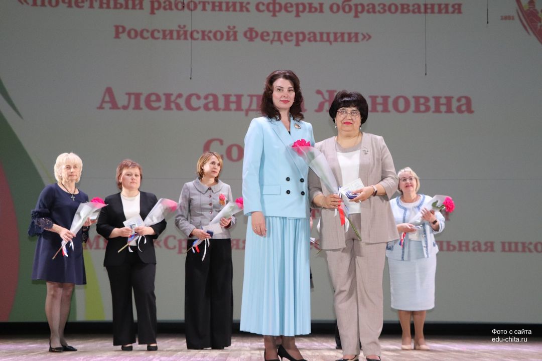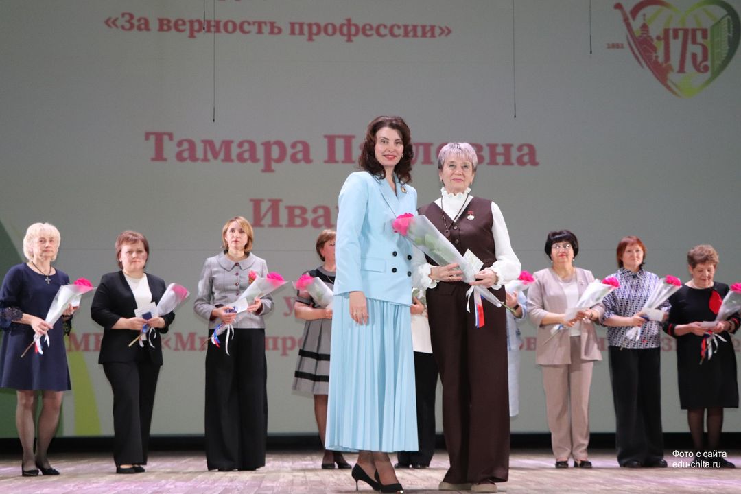 Награды педагогам вручила Мэр города Читы Инна Сергеевна Щеглова. Она подчеркнула особую роль учителей в жизни города и страны: «Именно вы формируете будущее нашего города, вкладывая в сердца учеников любовь к малой родине, честность и трудолюбие. В этот юбилейный для нашей любимой Читы год мы по традиции чествуем лучших из лучших. Ваши награды — это признание вашего неоценимого вклада в процветание Читы, в будущее великой России!».