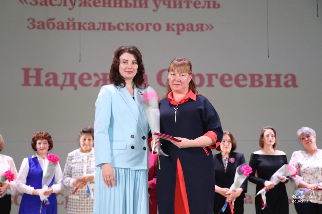 Почетное профессиональное звание «Заслуженный учитель Забайкальского края» присвоено: учителю начальных классов школы №11 Олесе Грибовой, учителю начальных классов школы №20 Надежде Гуляевой, учителю начальных классов школы №25 Елене Мохнаткиной.