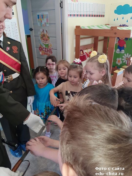 Юнармейцы школы №24 рассказали о своём движении, о том, что все дети являются будущими защитниками Родины. Юнармейцы стараются быть достойными гражданами своей страны, какими были их дети и прадеды, которые защищали Отечество на фронтах ВОВ. Также ребята рассказали о своей форме и медалях, о флаге страны и Знамени Победы, продемонстрировали противогазы. Так юнармейцы побывали в роли наставников дошколят, которым тоже захотелось составить им достойную смену в будущем.