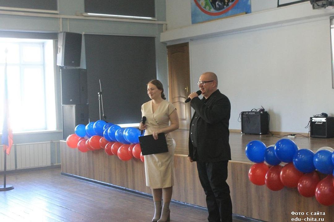Церемония традиционно началась с выноса государственного флага и исполнения гимна России. Открыли торжественное мероприятие директор школы Руслан Викторович Никонов и заместитель директора по воспитательной работе Ольга Алексеевна Днепровская.