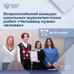 Институт журналистики, коммуникаций и медиаобразования Московского педагогического государственного университета объявил о старте Всероссийского конкурса (https://vk.com/wall-222684578_194) школьных журналистских работ «Человеку нужен человек».