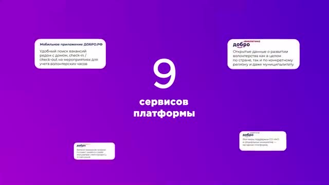 На платформе «ДОБРО.РФ» представлено множество различных мероприятий: патриотических, социальных, спортивных, экологических, культурных.