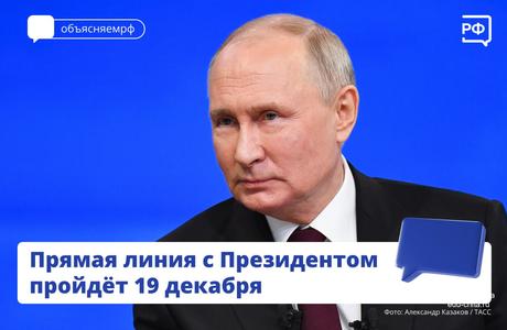 Ежегодная большая пресс-конференция и прямая линия с Президентом пройдут в совмещённом формате в четверг, 19 декабря. Владимир Путин подведёт итоги года и ответит на вопросы россиян в прямом эфире.