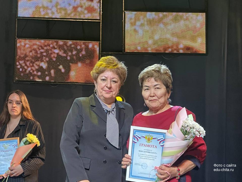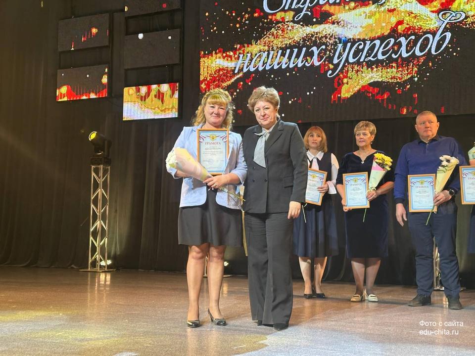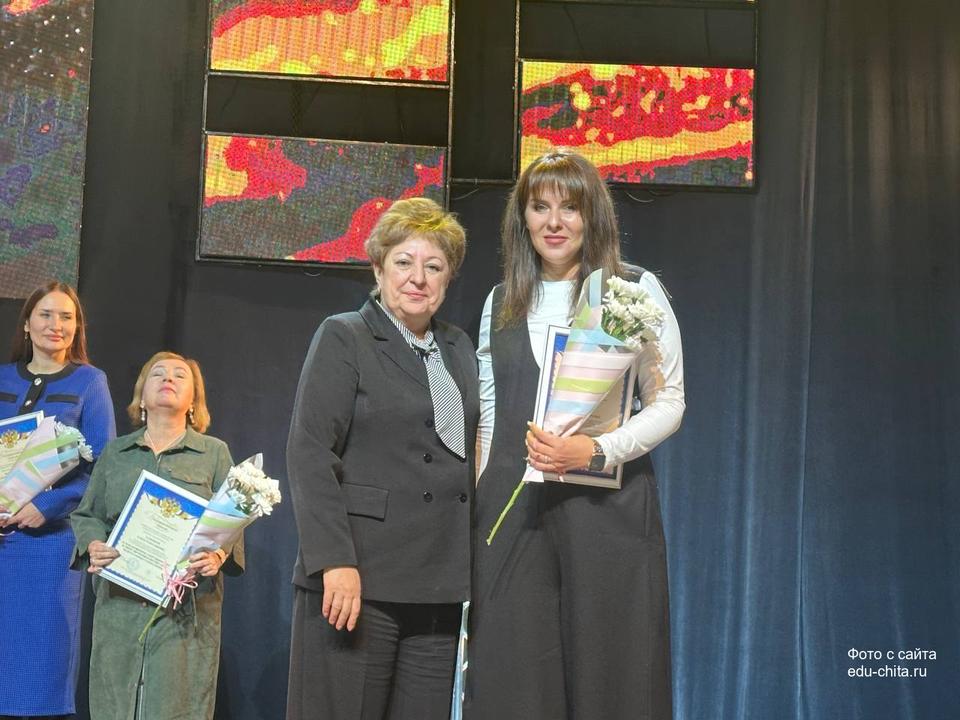 В знак признания многолетнего и добросовестного труда, профессионализма и личного вклада в воспитание и обучение подрастающего поколения города Читы почётным званием «Почётный работник сферы образования Российской Федерации» были отмечены: