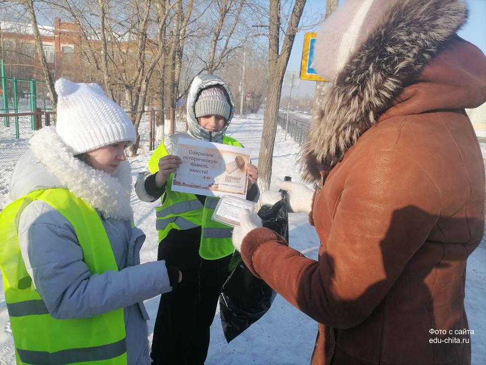 В день памяти о снятии блокады Ленинграда, юные инспектора движения школ города Читы приняли участие в памятных акциях, посвященных этому историческому событию.