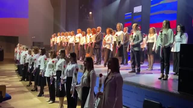 Конкурсанты с гордостью исполнили гимн Российской Федерации. Этот трогательный момент стал символом единства и сплочённости, отражая важность и значимость труда педагогов в обществе.