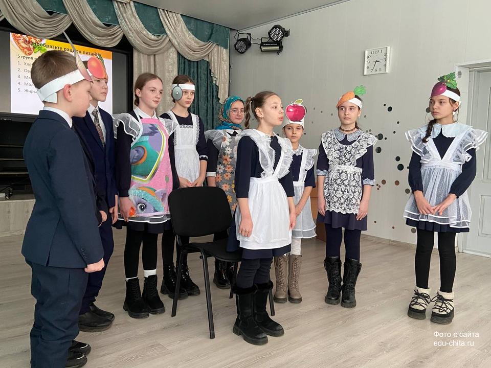 Учащиеся школы №26 продемонстрировали театрализованное представление, посвященное важности здорового питания. В сценке были показаны сцены с участием овощей и фруктов, что наглядно продемонстрировало детям и взрослым, как важно включать эти продукты в свой рацион.