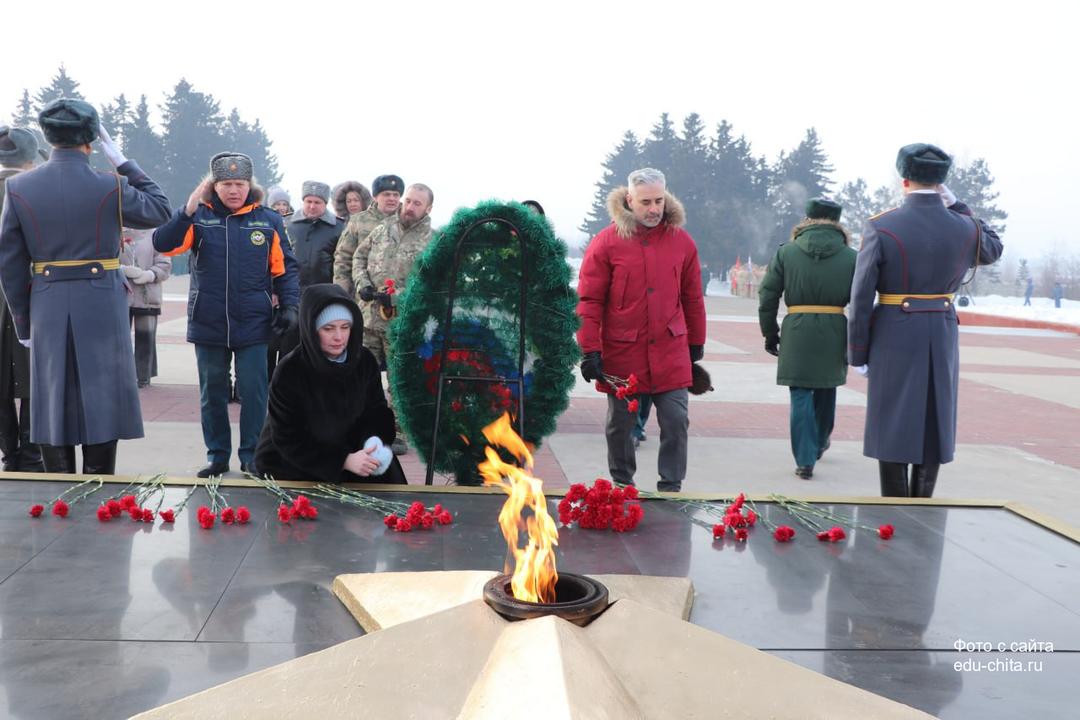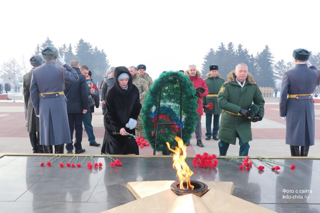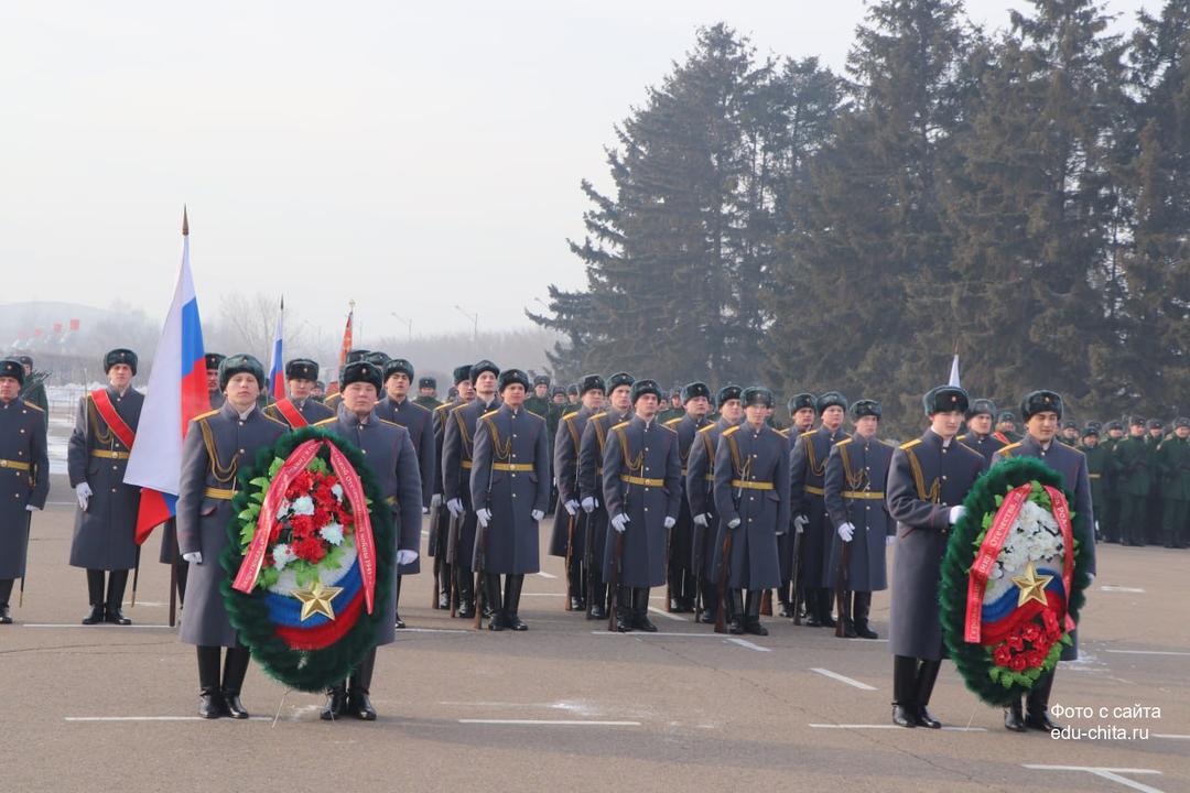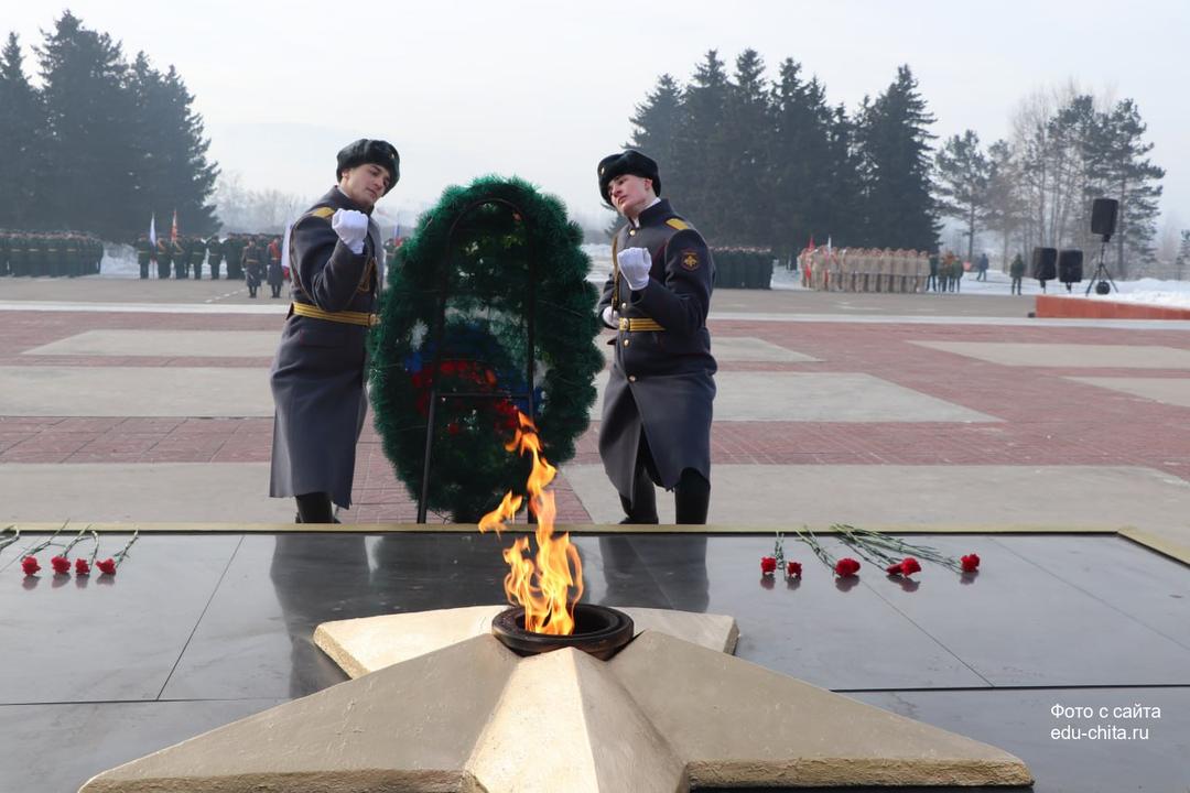 В год 80-летия Великой Победы поздравить ветеранов, солдат и офицеров, а также будущих защитников Родины на святое для всех забайкальцев место пришли первые лица Забайкальского края и города Читы, 29-й общевойсковой армии, депутаты, ветераны военной службы, участники спецоперации, юнармейцы, представители общественности.