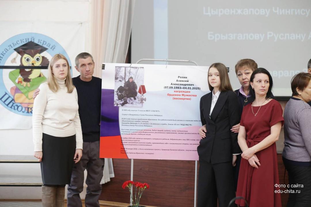 В школе №11 города Читы прошло торжественное открытие мемориальных стендов, посвящённых памяти выпускников, которые отдали свои жизни, исполняя воинский долг в спецоперации. На мемориальных стендах увековечены имена: