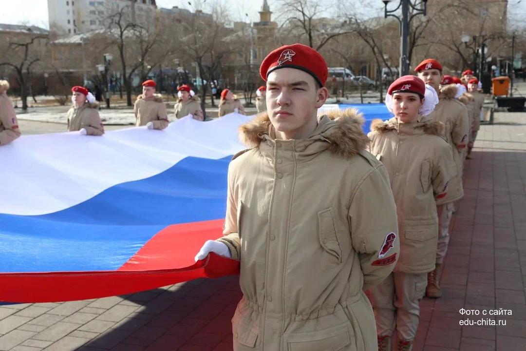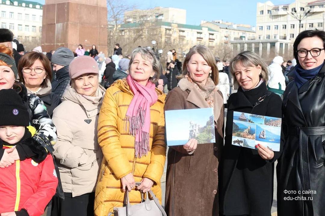 Возвращение Крыма в состав нашей страны — это историческая справедливость. Сегодня забайкальцы поздравили друг друга с этим праздником. На площади Ленина развернули 15-метровый триколор, провели большой флешмоб «Севастопольский вальс».