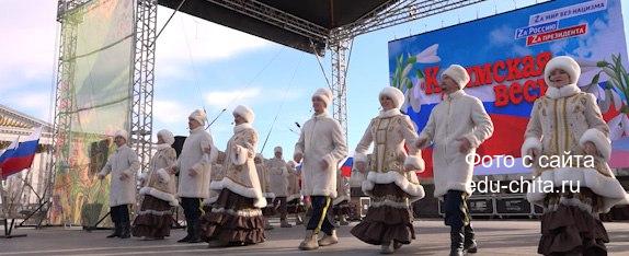 11 лет на Родине. Забайкальцы встретили «Крымскую весну». На главной площади краевой столицы собрались сотни жителей региона. Отмечали, как и полагается, все вместе. С танцами, песнями и хороводами.