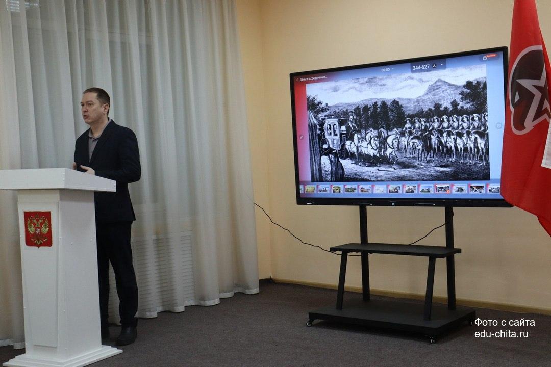 Денис Жеребцов рассказал юнармейцам о богатой истории Крыма и Севастополя. Ребята узнали, что Крым был присоединён к России ещё в 1783 году по указу императрицы Екатерины II. Крым хранит память о героической обороне Севастополя от англо-французских войск в 1853 году и о тяжёлых боях с немецкими захватчиками в 1942 году.