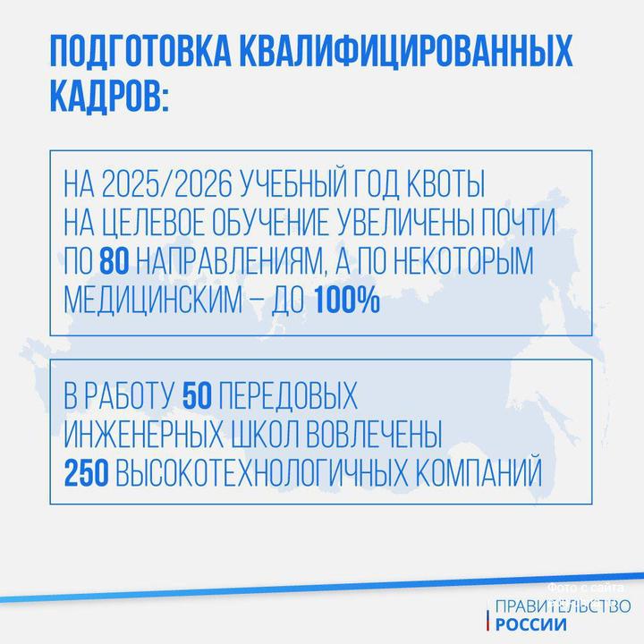 ✔️ Расширяется целевое обучение за счет федерального бюджета. На 2025/2026 учебный год квоты увеличены почти по 80 направлениям, а по некоторым медицинским – до 100%.