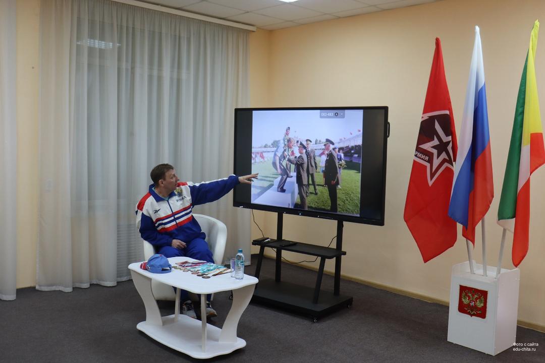 В Центре героико-патриотического воспитания «Дом юнармии города Читы» состоялась встреча юнармейцев Почетного караула школы №29 с выдающимся спортсменом, мастером спорта международного класса России по военному пятиборью Владимиром Вахрушевым.