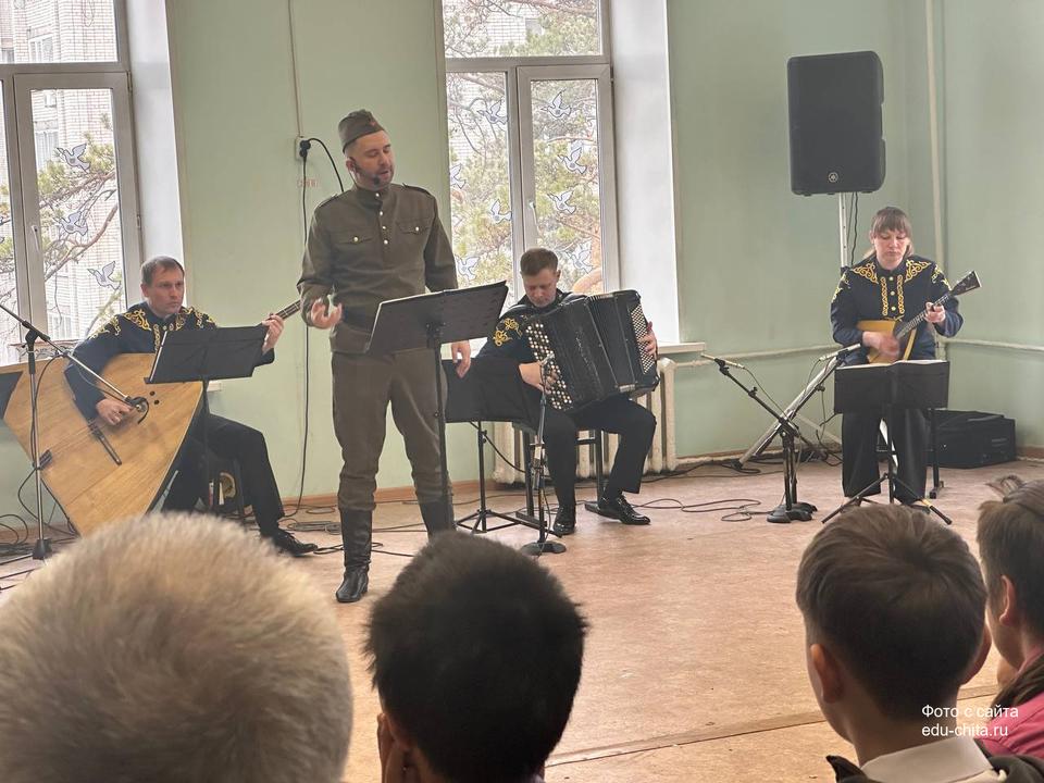 Сегодня, 9 апреля, учащиеся 9-х классов школы №3 познакомились с литературно-музыкальной программой «Судьба человека», которую представили артисты Забайкальской краевой филармонии. Постановка организована в рамках проекта «Пушкинская карта», а все собранные средства направят в фонд «Народный фронт. Все для победы!» на выполнение заявок от забайкальских подразделений, участвующих в СВО.