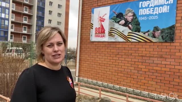 Фасад здания украшен тематическим баннером, посвященным подвигу советского солдата, а окна оформлены символичным клином журавлей – знаком памяти о павших воинах. На первом этаже транслируется видеоряд военных и патриотических песен, создающих особую атмосферу для всех посетителей.