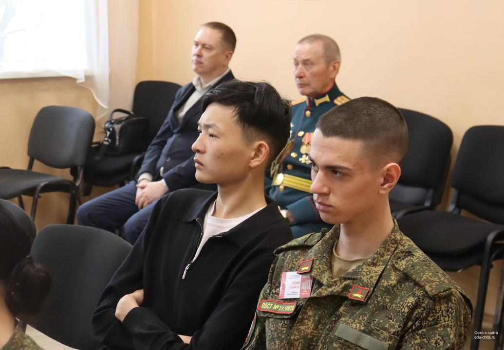 В штабе Поста №1 на Мемориале "Боевой и трудовой славы забайкальцев" Почетный караул школы №35 встретился с участником Специальной военной операции — сотрудником Пограничного управления, выполнявшим боевые задачи по охране государственной границы.