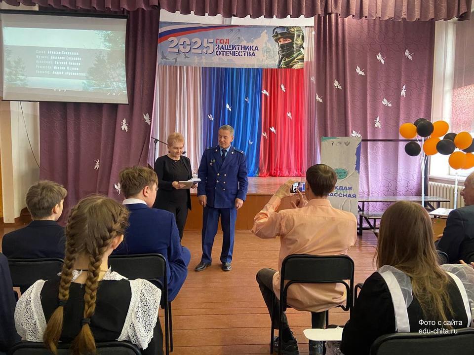 Валерий Викторович Попов представил и подарил книги ребятам: «Не ушла война в забвенье...» писателя-земляка Бориса Макарова и сборник стихотворений «Мы с вами, братья» с произведениями забайкальских авторов о героизме, мужестве бойцов, защищавших Родину в СВО.