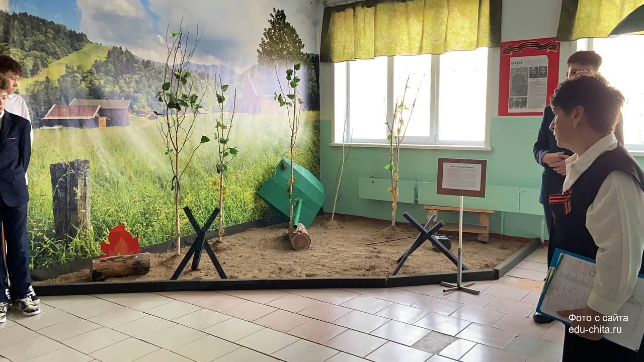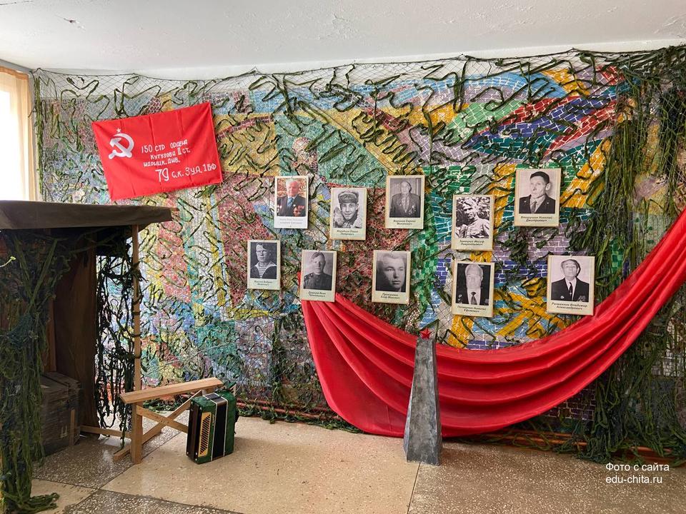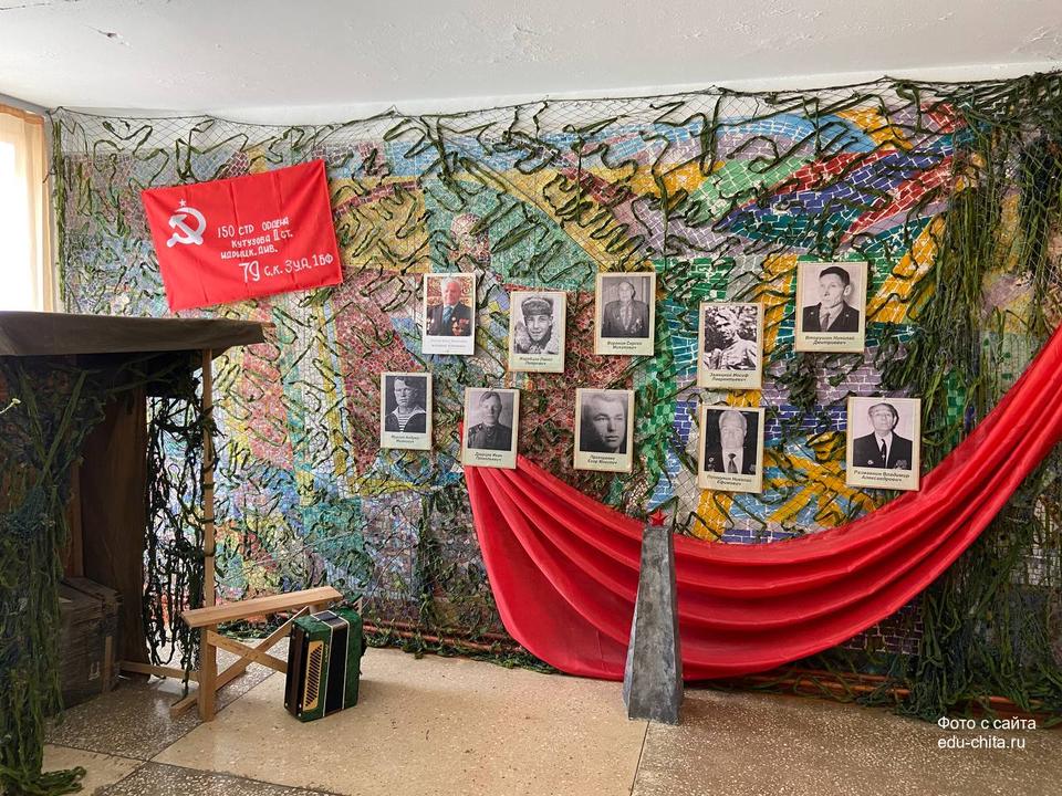 Школа № 30 превратилась в настоящий музей под открытым небом. На первом этаже разместилась трогательная экспозиция с фотографиями ветеранов Великой Отечественной войны, проживавших в 6-м микрорайоне Читы.