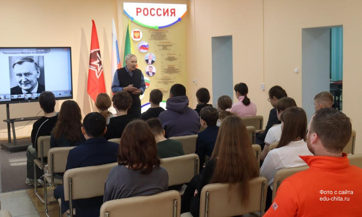 Борис Георгиевич поделился с ребятами историей своего профессионального пути. Выпускник школы посёлка Могочино Томской области, в 1963 году он поступил в Челябинское высшее военное авиационное училище штурманов. Его карьера включает службу штурманом на самолёте Ан-12 в 566-м военно-транспортном авиационном полку, обучение в Военно-воздушной академии имени Ю.А. Гагарина и руководящую работу в должности начальника штаба 21-го авиационного полка истребителей-бомбардировщиков в Бурятской АССР.