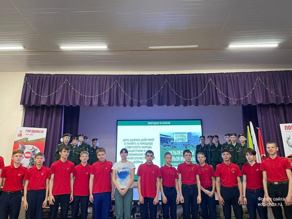 Советник директора по воспитанию школы №6 провела урок-реконструкцию «Без срока давности», посвящённый Дню памяти о геноциде советского народа нацистами в годы войны. Участниками стали ребята почётного караула и юнармейского отряда «Горячие сердца».