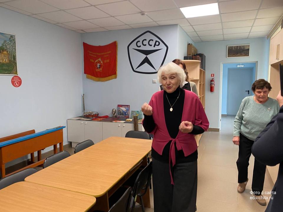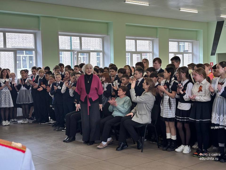 В рамках визита состоялась торжественная линейка, на которой Галина Владимировна передала в дар школьному музею книгу, посвященную её отцу, пополнив таким образом музейную экспозицию, рассказывающую о подвиге героя.