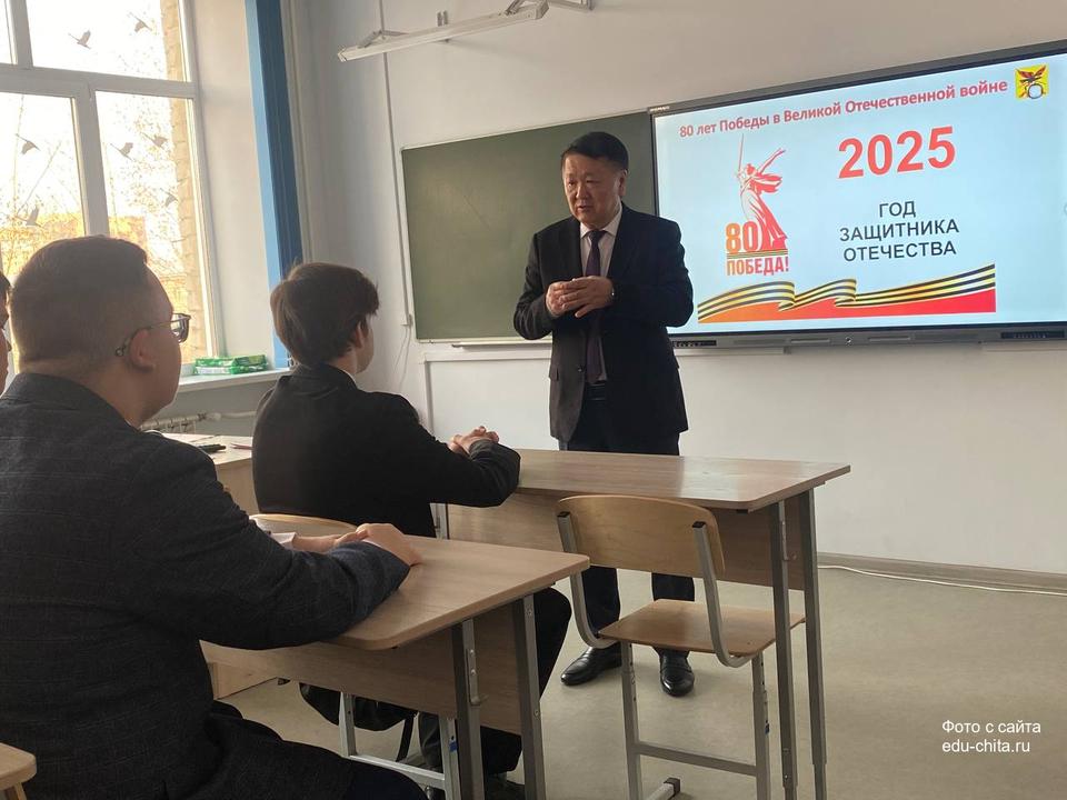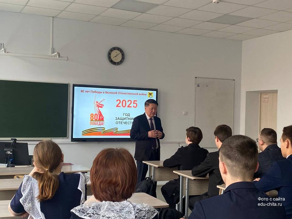 Сегодня, 5 мая, в школе №40 состоялся Урок мужества для учащихся 10 «а» класса. Гостем мероприятия стал председатель Законодательного Собрания Забайкальского края Кон Ен Хва.