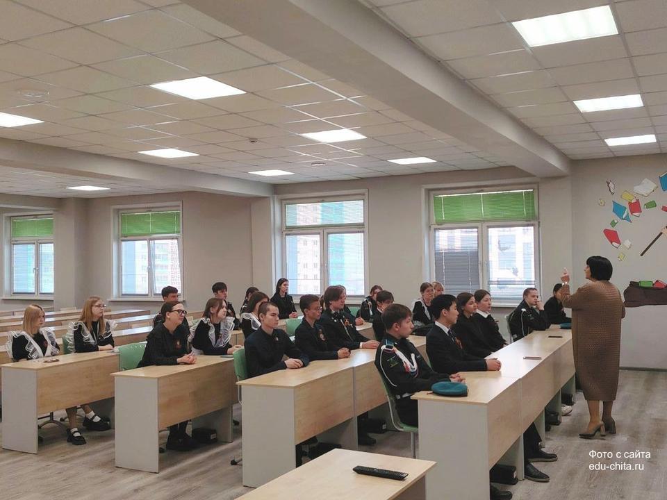 Министр здравоохранения Забайкальского края Оксана Немакина провела в школе №55 урок мужества, посвященный героизму советского народа в годы Великой Отечественной войны и подвигам современников.