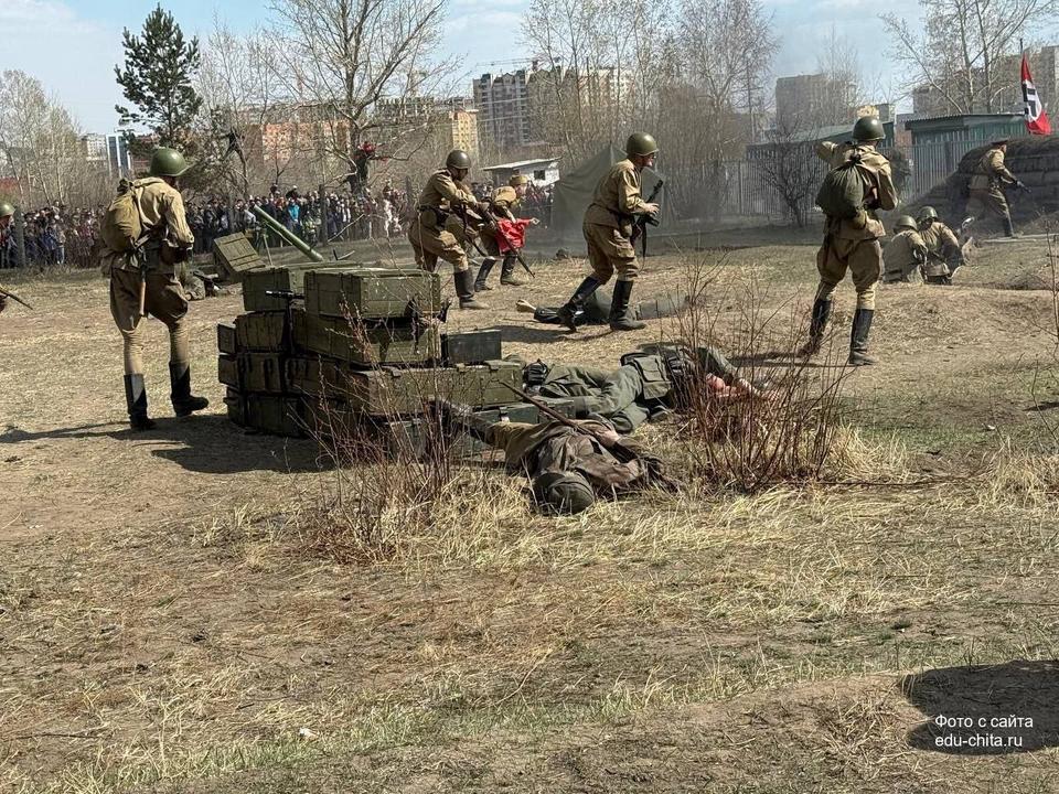8 мая юнкоры городского медиацентра работали на реконструкции одного из боев Великой Отечественной войны, организованный клубом военно-исторической реконструкции "Забайкальский фронт".