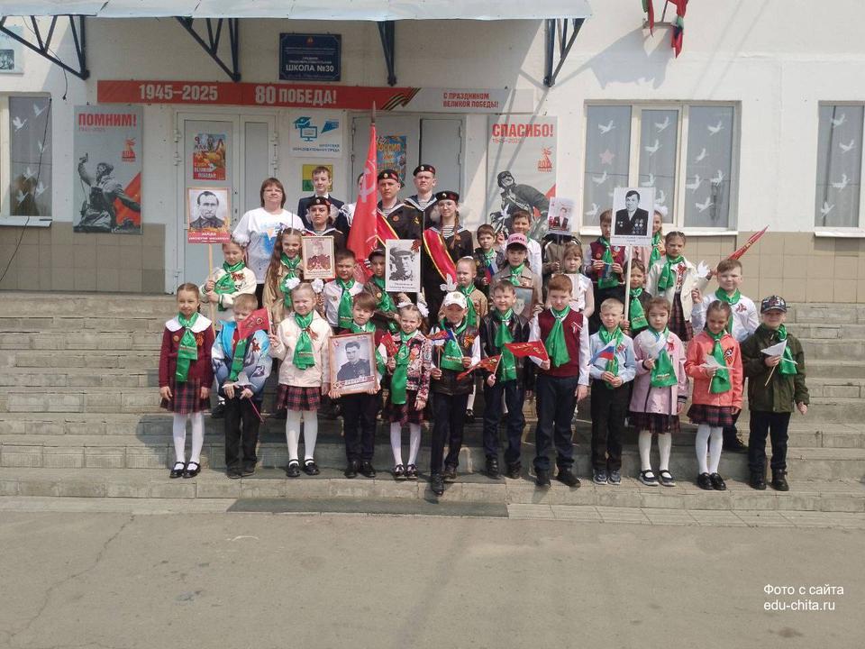 Акция «БЕССМЕРТНЫЙ ПОЛК: Герои среди нас» в школе №30 была организована советником директора по воспитанию Пентюхиной Татьяной Александровной, учителями начальных классов, родителями обучающихся, активистами ученического самоуправления и Движения Первых, школьным Почётным караулом и творческими школьными коллективами. Участниками Всероссийской Акции стали 735 учеников начальных классов.