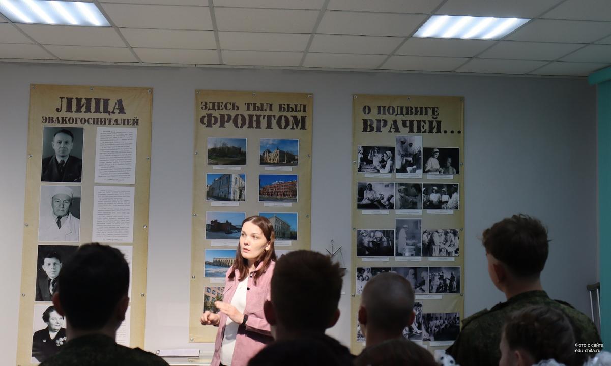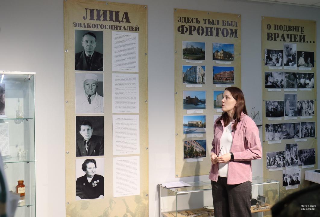 В завершении Татьяна Семенова провела экскурсию по новой выставке под названием «Эвакогоспитали военной Читы», которая начала свою работу. Экспозиция рассказывает о подвиге медицинских работников, о работе основных эвакогоспиталей и деятельности ведущих хирургов г. Читы.