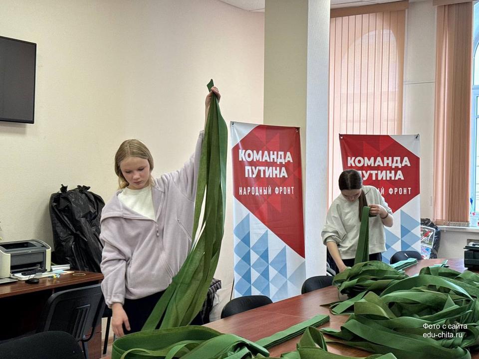 Ребята  присоединились к важному патриотическому проекту и помогали Народному фронту в формировании лент для плетения маскировочных сетей.