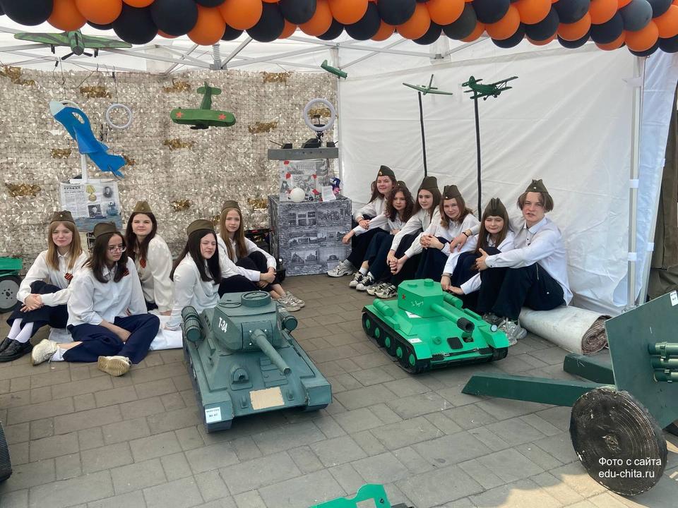 Помимо концертной программы, на площади Ленина были организованы специальные площадки с инсталляциями. Гости мероприятия смогли ознакомиться с творческими работами детей и их родителей, посвященными военной истории.