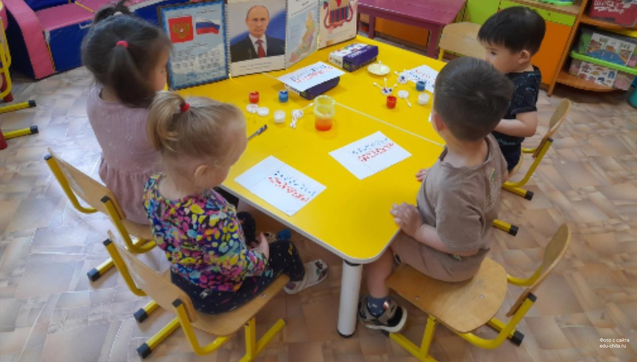 Особое внимание уделяется развитию творческих способностей малышей. Под руководством воспитателя Шаршиной Виктории Анатольевны ребята осваивают необычную технику рисования, создавая яркие и выразительные образы государственного символа.