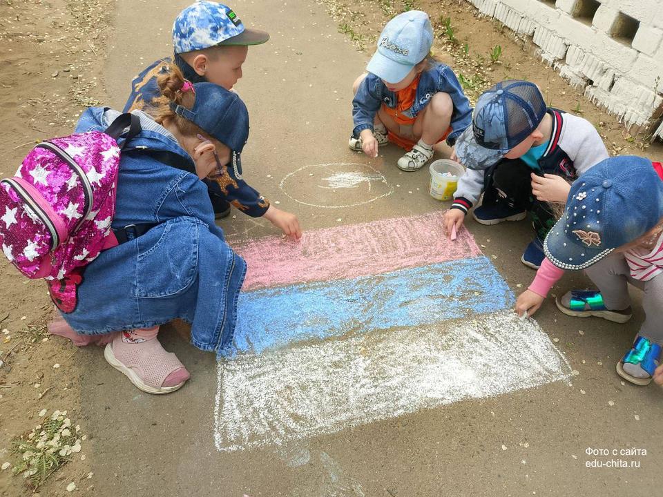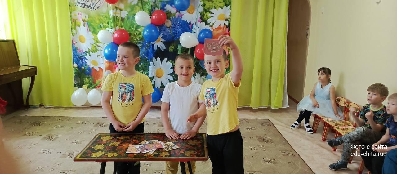 В рамках праздника дети познакомились с историей и значением государственных символов — флага, герба и гимна России. Ребята читали стихи о Родине, исполняли песни, танцевали, участвовали в весёлых играх и флешмобах с российскими флажками.