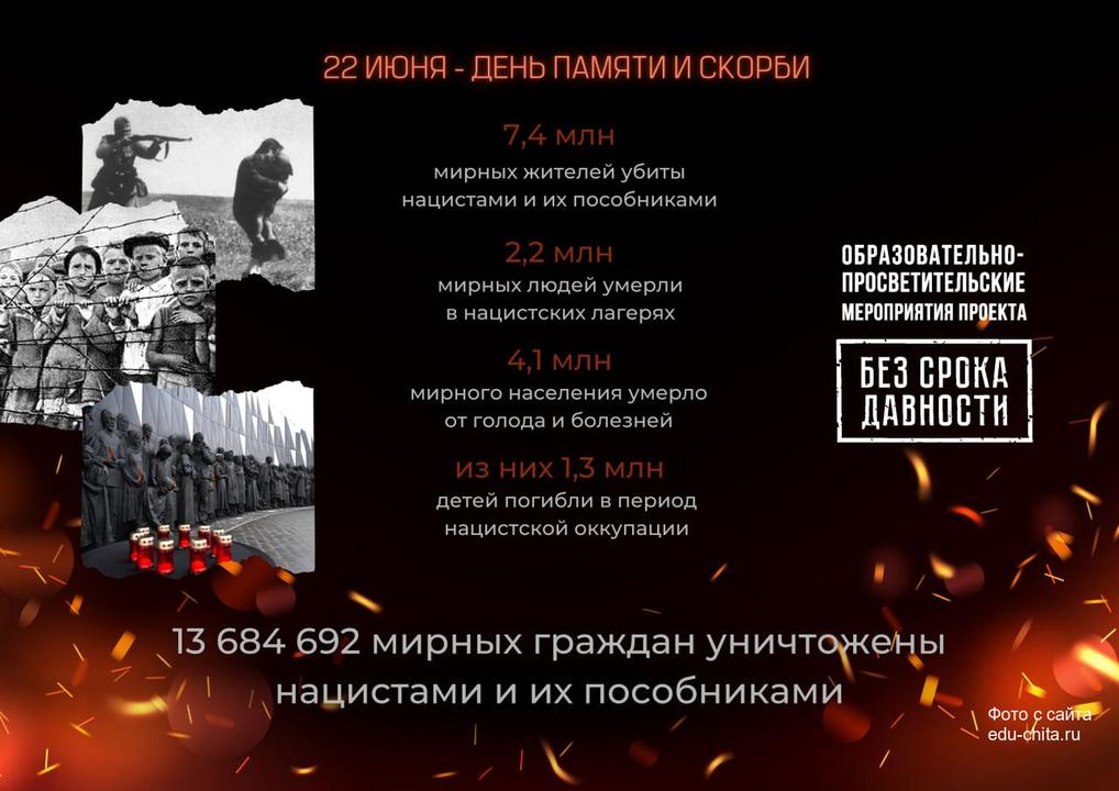 С 2023 г. Министерством просвещения Российской Федерации и Московским педагогическим государственным университетом в рамках реализации проекта «Без срока давности» проводится Всероссийская акция «Память священна». В рамках акции образовательным сообществом проводятся памятные мероприятия, призванные рассказать детям, подросткам, молодежи о жертвах нацистских преступлений, привлечь внимание обучающихся к деятельности по сохранению памяти о событиях Великой Отечественной войны 1941–1945 годов.