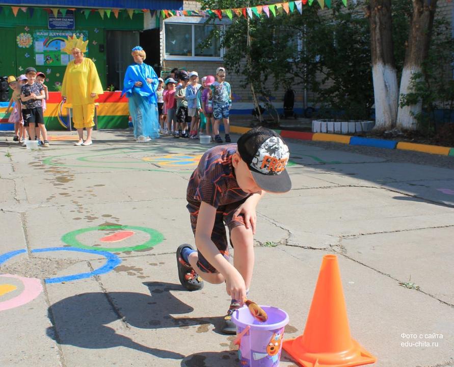 Дети провели целый день на свежем воздухе. Они принимали солнечные и воздушные ванны, танцевали под веселую музыку и играли в подвижные игры. Ребята водили хороводы и участвовали в забавных эстафетах с водой.