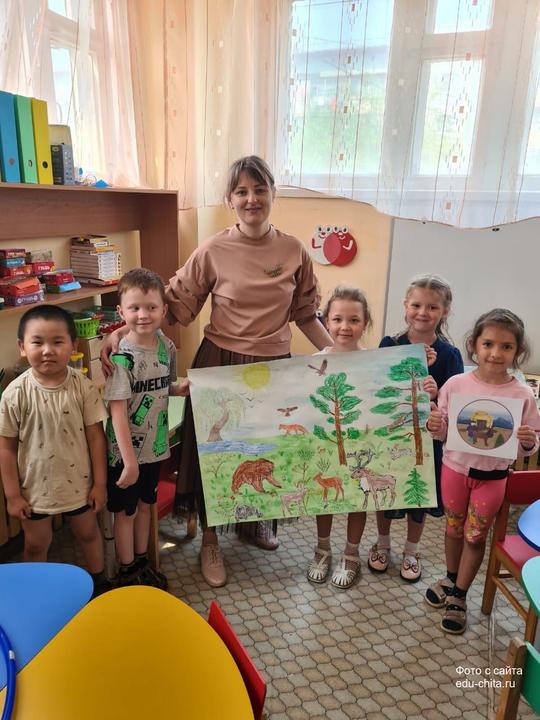 В детском саду № 45 завершился творческий проект«Четырехэтажная тайга» по мотивам повести забайкальского писателя Георгия Граубина. Дети познакомились с миром забайкальской тайги. Ребята узнали о растениях и животных нашего края, о том, как они живут в суровых условиях — с холодными зимами и коротким летом.