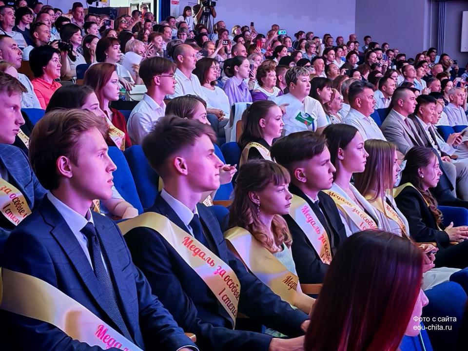 Председатель Законодательного Собрания Забайкальского края — Юрий Михайлович Кон в своей напутственной речи выпускникам отметил повышение качества образования в нашем крае. В 2025-ом, из полутора тысяч выпускников, золотые и серебряные медали получили 287 ребёнка.