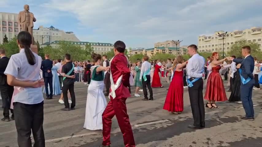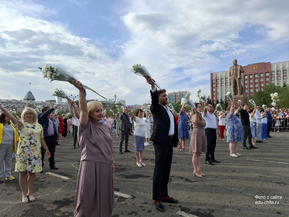 Всеобщий школьный выпускной состоялся на главной площади Читы. Празднование открыли те, кто своим трудом и самоотверженностью вложили знания в умы юных забайкальцев — их учителя. Следом на площадь вышли и сами выпускники, станцевали уже традиционный танец полонез.