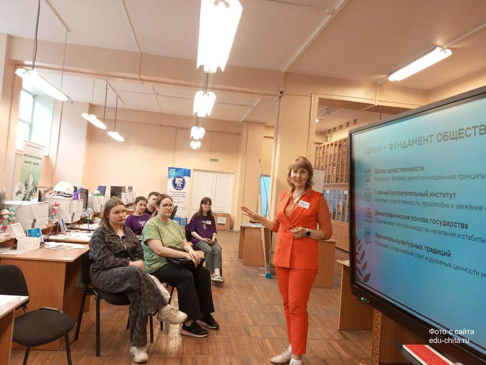 Так, лектор просветительской организации, проректор по образовательной деятельности ЗабГУ Ольга Еремеевавместе с ребятами из студотряда говорила о любви, семье и верности — ценностях, которые кажутся вечными, но в наше время приобретают новые формы.