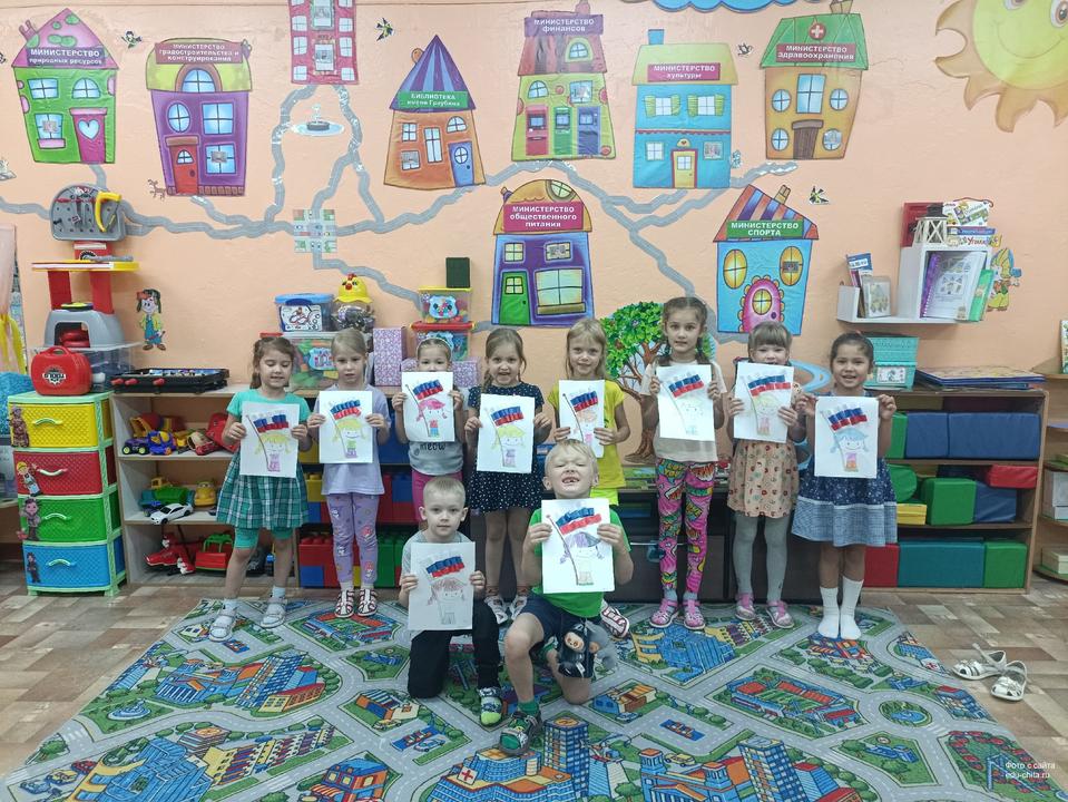 В детском саду №23 состоялся праздник «Под флагом России», где ребята читали стихи о Родине, пели песни и играли в подвижные игры.Педагоги вместе с детьми также изготовили флаги и провели акцию «Я люблю тебя, Россия!». В детском саду №74 прошла обрывная аппликация «Российский флаг», а в детском саду №62 - торжественное внесение флага и гимна России.