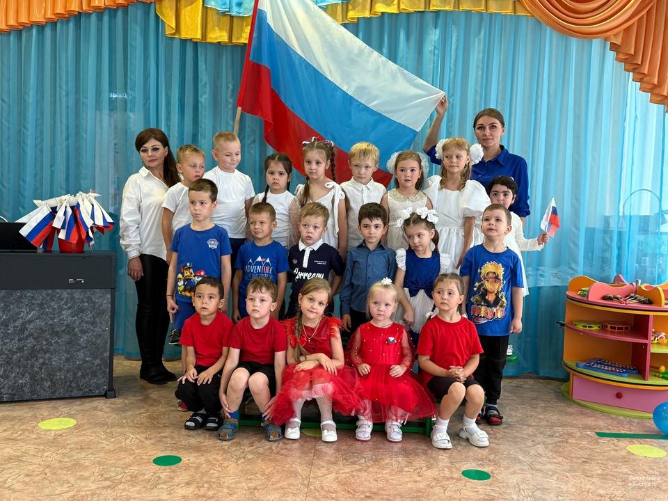 В детском саду №55 состоялся праздничный концерт с патриотическими песнями и танцами, а также флешмоб, где все воспитанники были одеты в цвета российского флага.