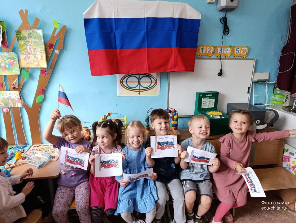 В детских садах города Читы прошли праздничные мероприятия,посвященные Дню государственного флага Российской Федерации. Тематические программы, в которых приняли участие воспитанники дошкольных учреждений,помогли детям узнать больше о главном символе страны и воспитать чувство патриотизма.