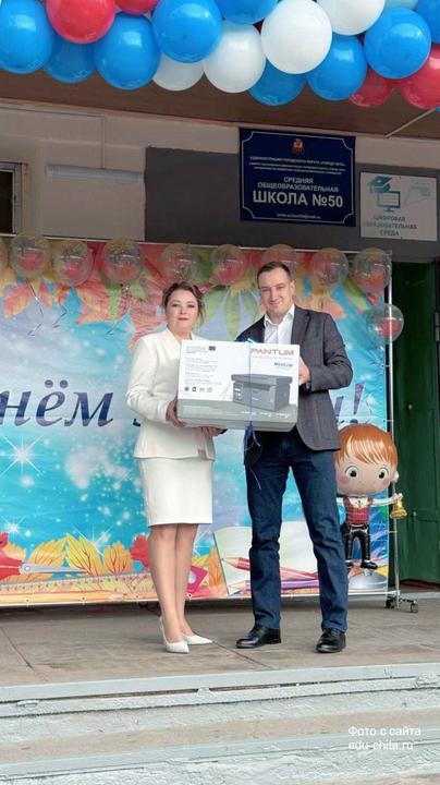 Анатолий Викторович поздравил учеников, учителей и родителей с наступлением учебного года, подарил учреждению полезную оргтехнику — лазерное МФУ.